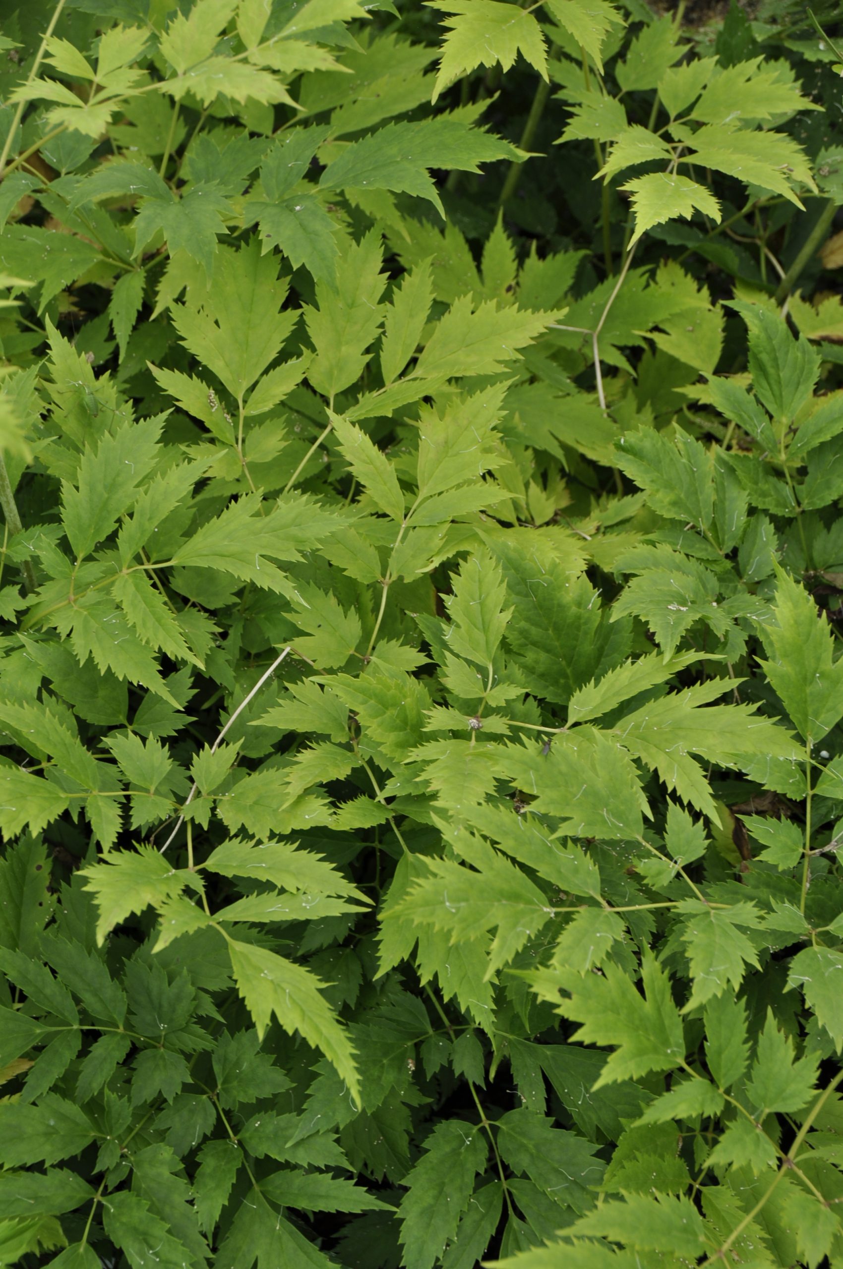 cremeweiß, VII-VIII, 200 cm, Blatt grün, halbschattig bis schattig, mittel, horstig, Pflanzabstand 60 cm