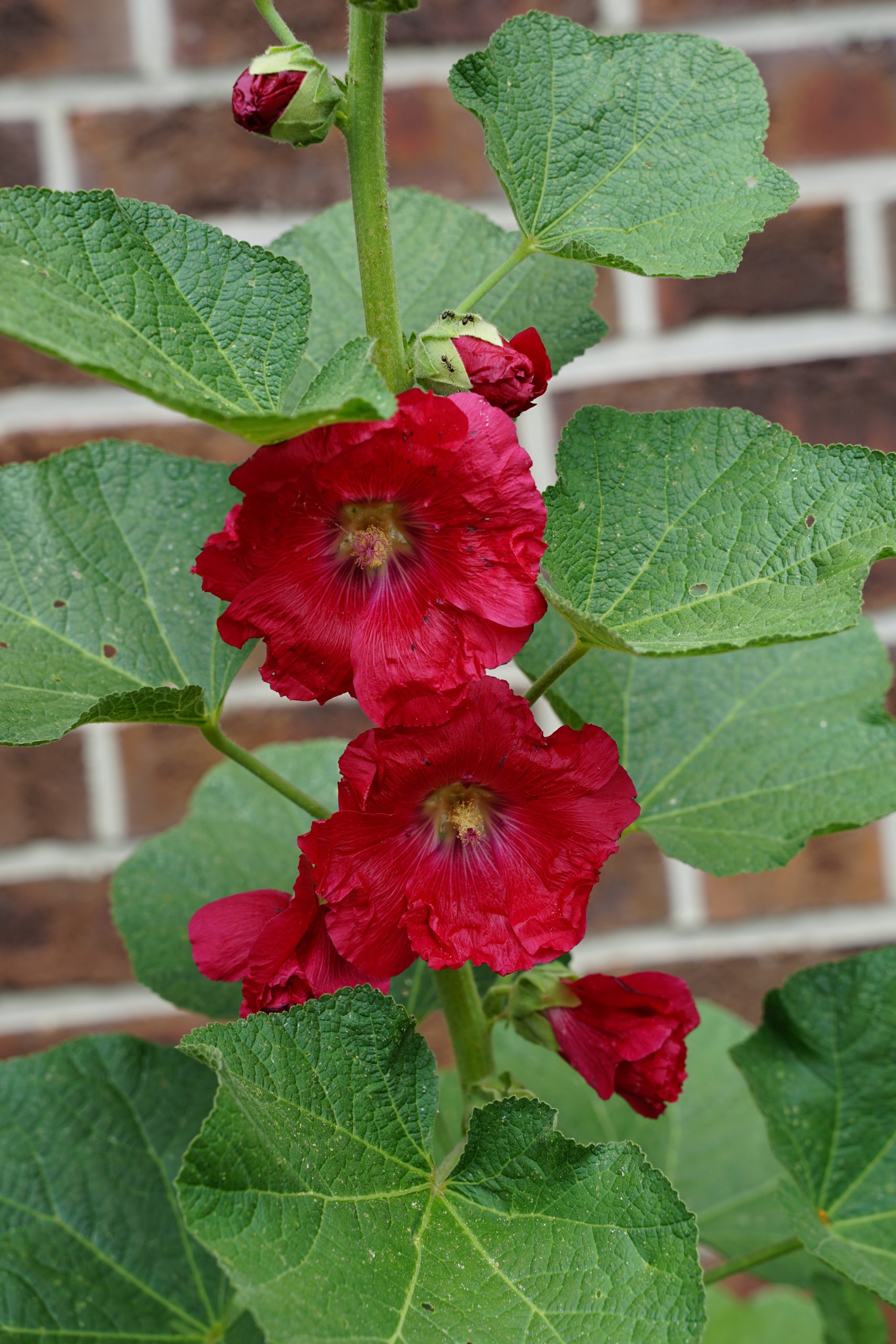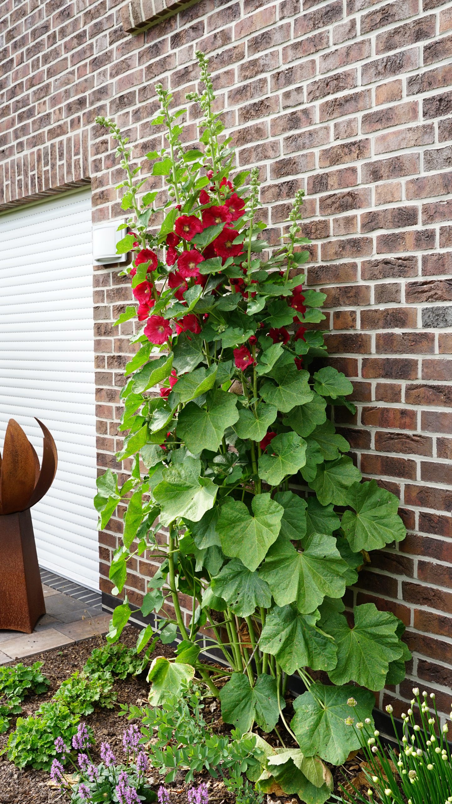 rot, ungefüllt, VI-IX, 180 cm, Blatt grün, sonnig, mittel, versamend, Pflanzabstand 50 cm