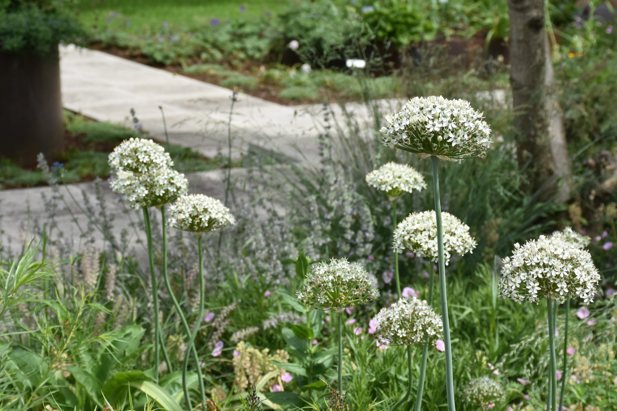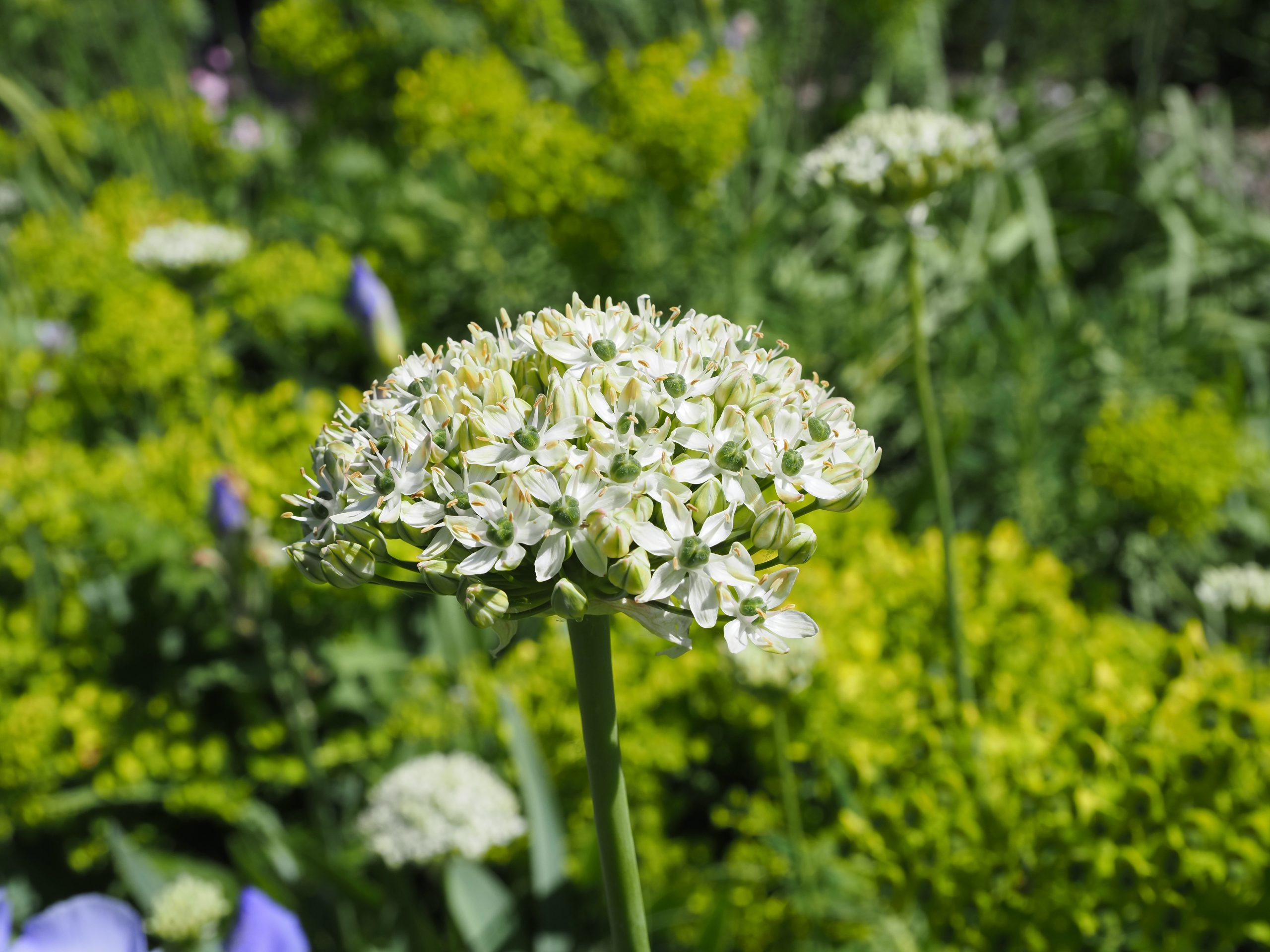 weiß, grüne Mittelrippe, V-VII, 75 cm, Blatt grün, sonnig, trocken bis mittel, horstig, Pflanzabstand 25 cm