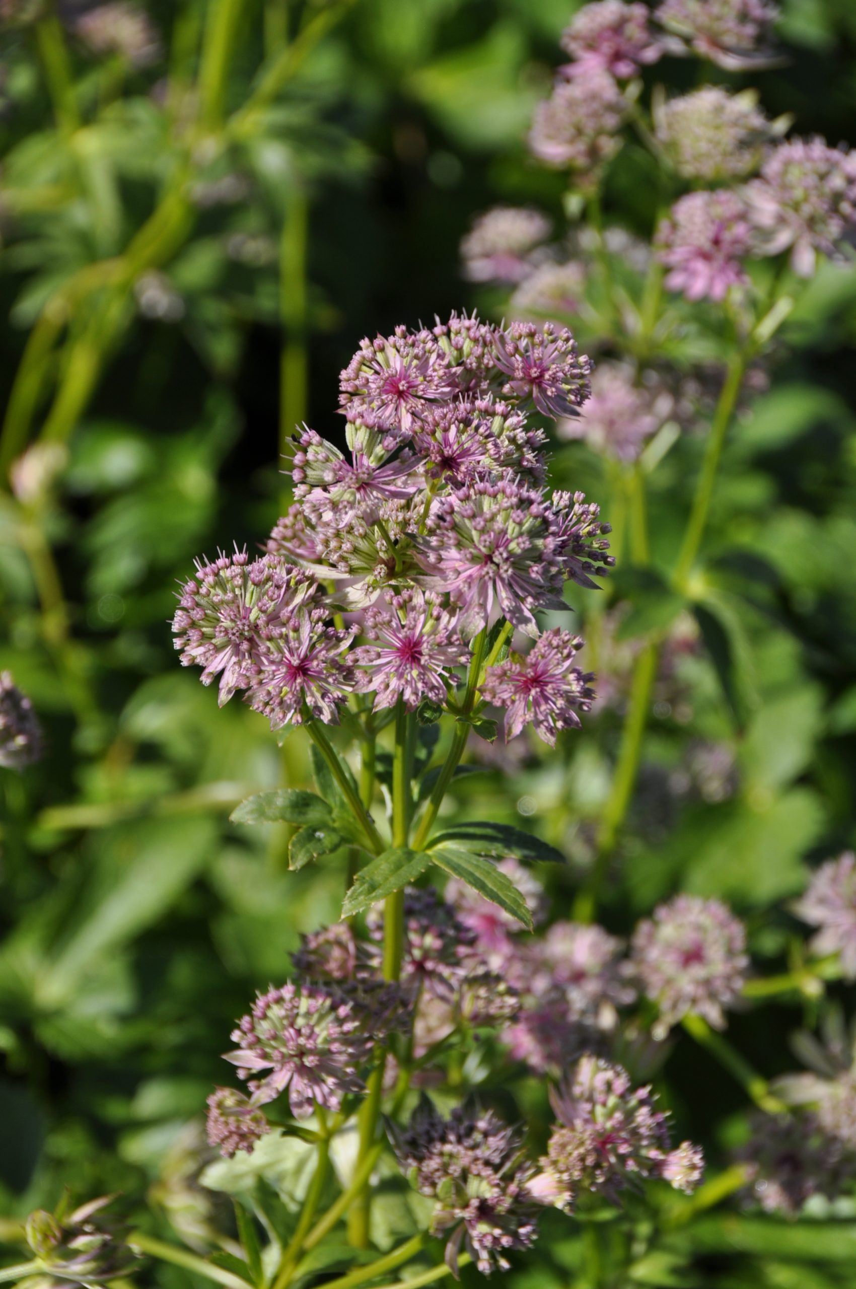 silbrig-rosa, VI-IX, 70 cm, Blatt grün, halbschattig, mittel, horstig, Pflanzabstand 40 cm