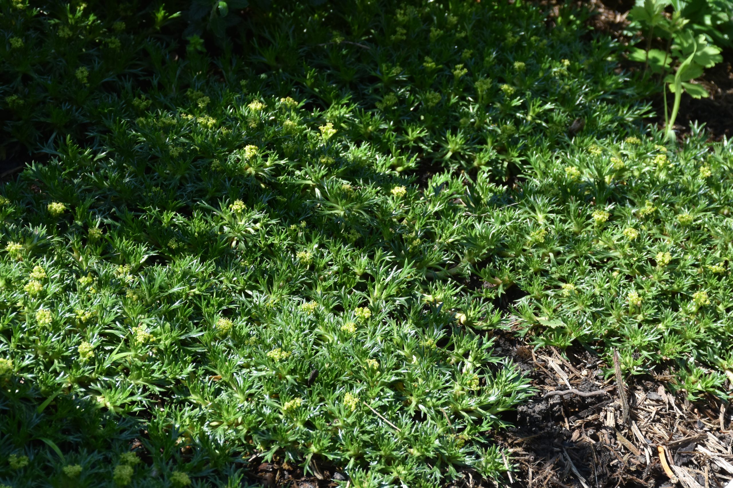 grünlich-gelb, V-VI, 5 cm, Blatt grün, sonnig, trocken bis mittel, polsterförmig, Pflanzabstand 30 cm