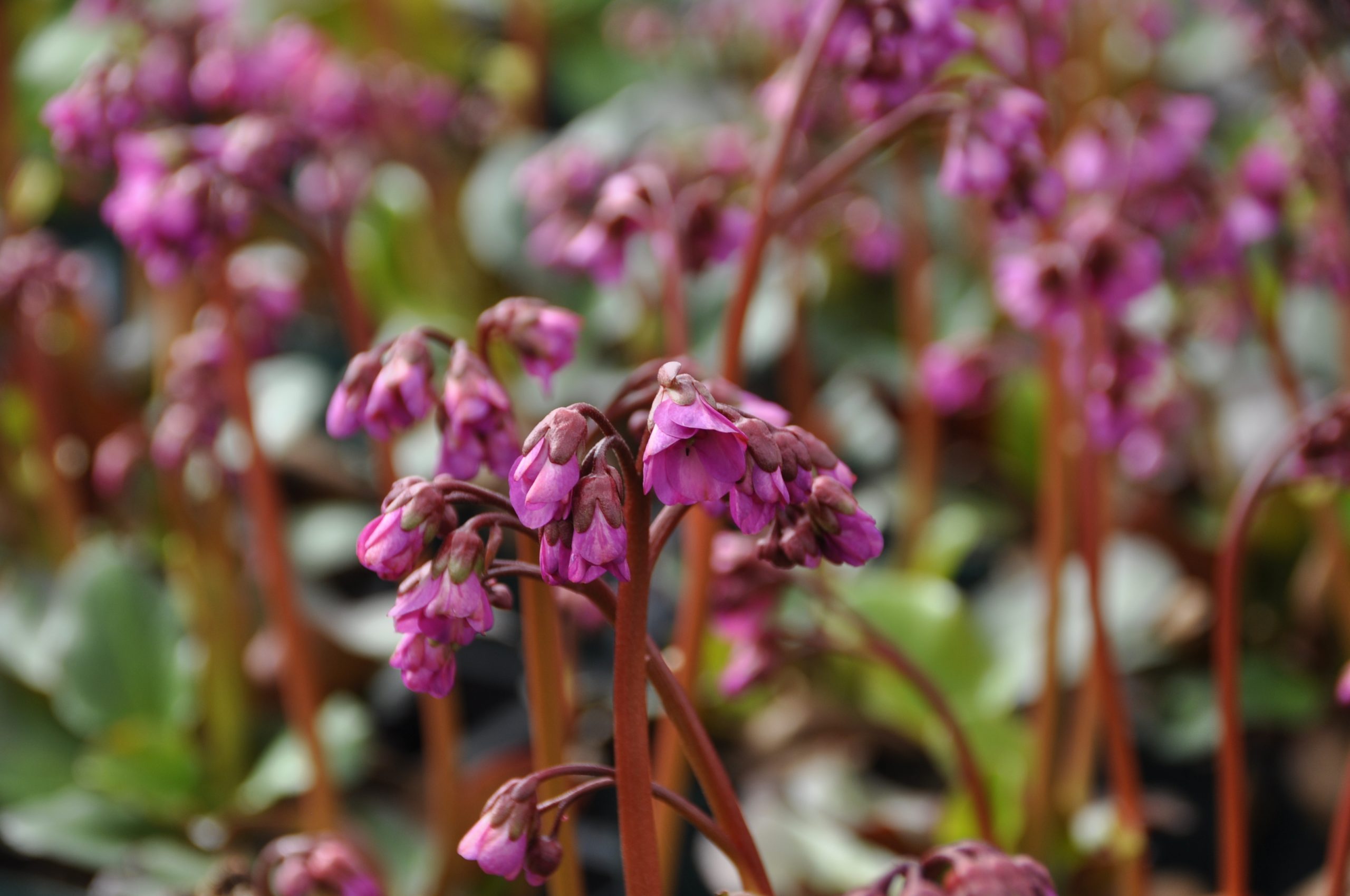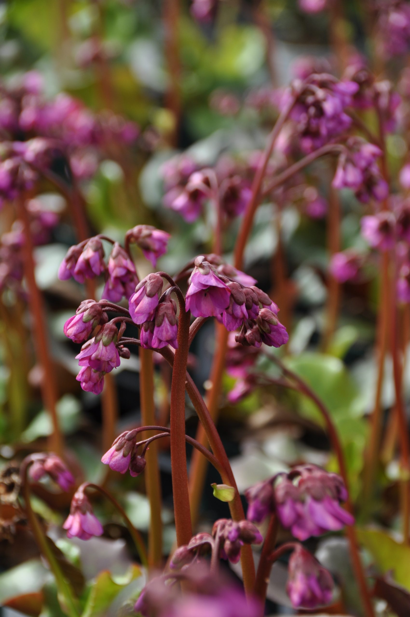 purpur-rot, IV-V, 35 cm, Blatt grün, rötlich, halbschattig, trocken bis mittel, horstig, Pflanzabstand 40 cm