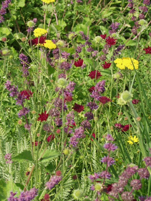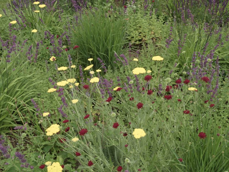 Rückschnitt im Spätwinter. Sommerschnitt bei Nepeta und Knautia macedonica Ende Juni/ Anfang Juli für eine Nachblüte empfehlenswert, 2 bis 4 Jätgänge pro Jahr.