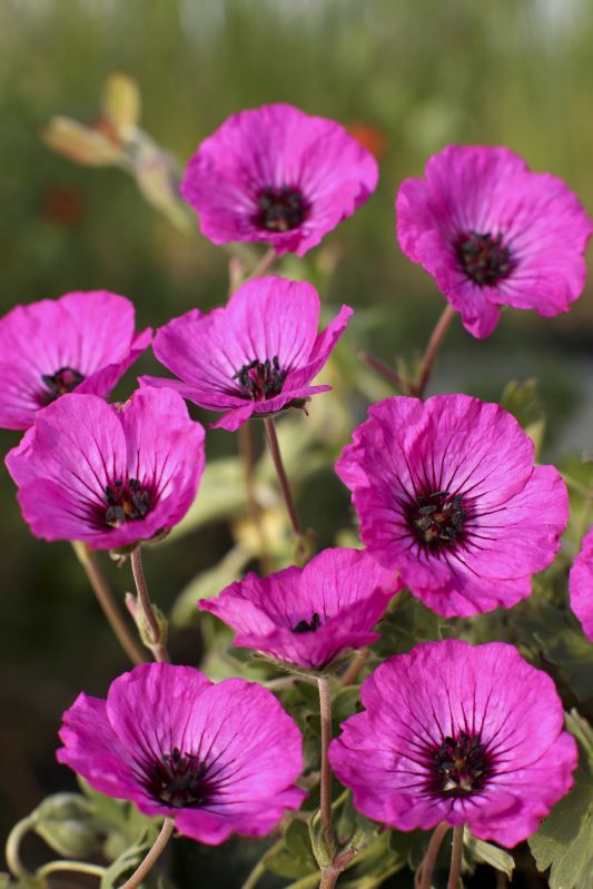 purpur, dunkle Mitte, VI-IX, 15 cm, Blatt graugrün, sonnig, trocken, horstig, Pflanzabstand 30 cm