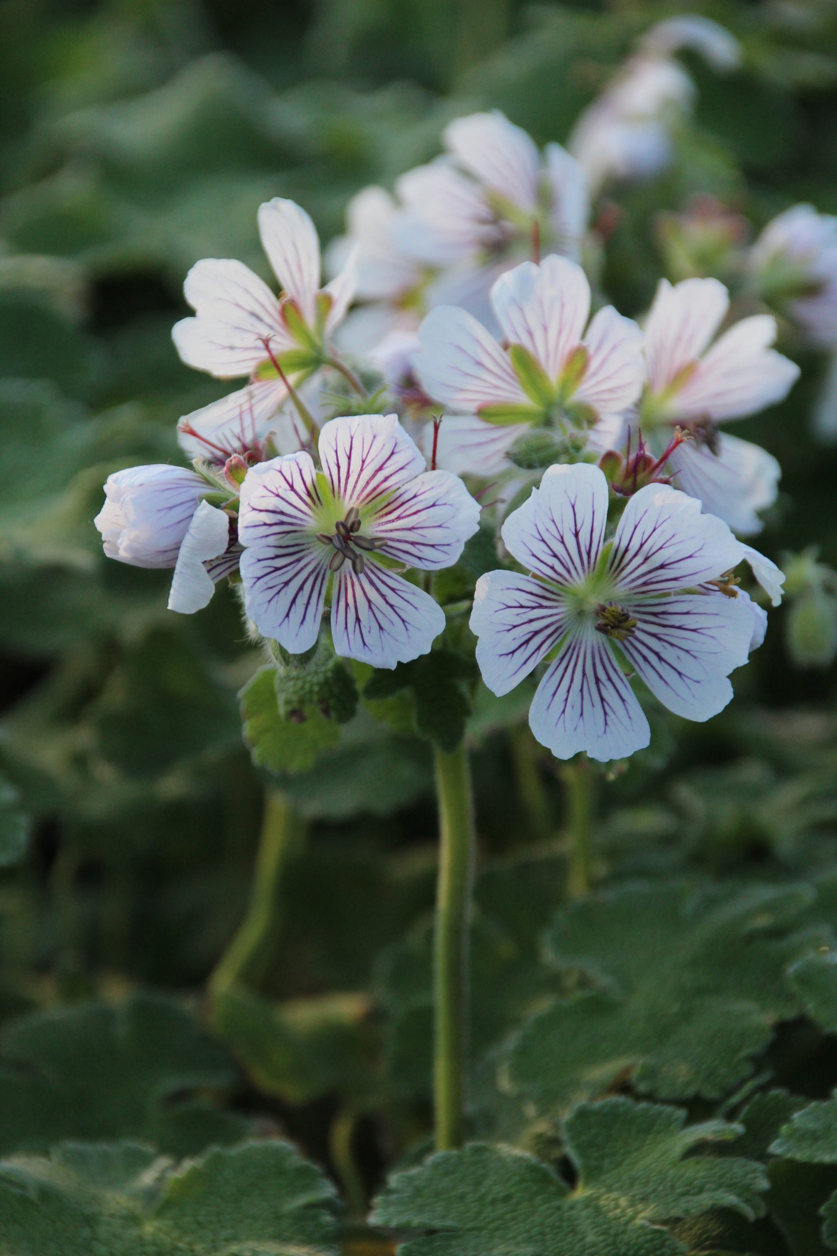 weiss mit dunkler Aderung, V-VI, 30 cm, Blatt graugrün, sonnig, trocken, horstig, Pflanzabstand 35 cm