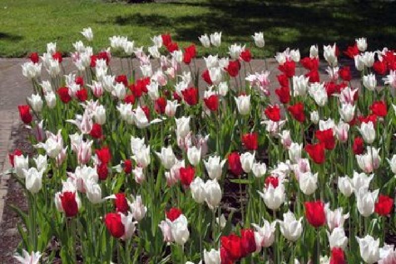 eine elegante, sehr auffallende Mischung lilienblütiger Tulpen in rot und weiss