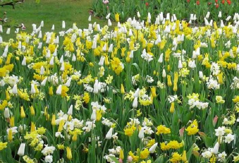 wunderschöne gelb-weisse Mischung aus Lilienblütigen Tulpen, Jonquillen und gefüllten Narzissen