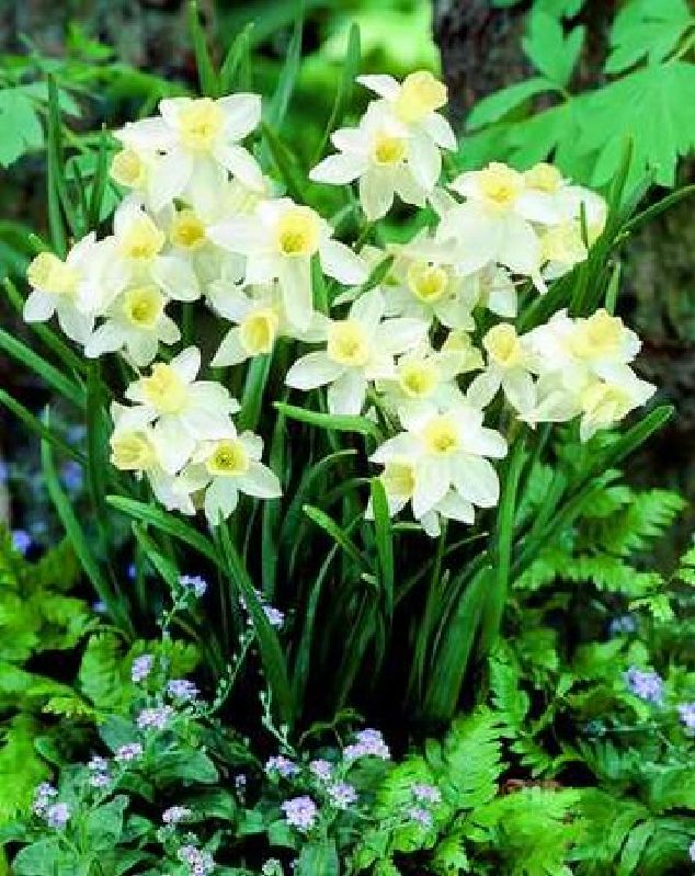 weißer Kranz, cremegelbe Krone, IV-V, 30 cm, Blatt grün, sonnig bis halbschattig, mittel, horstig, Pflanzabstand 10 cm