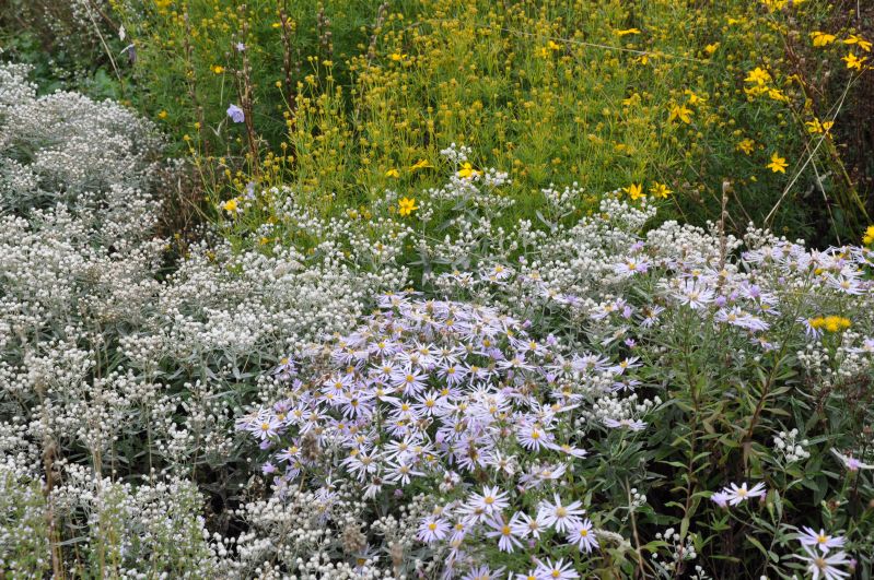 Standfeste Mischung mit hohem Gräseranteil und leuchtenden Blüten in weiss, gelb, hellblau und violett. Sommerwind besitzt einen ausgeprägt harmonischen Herbstaspekt.