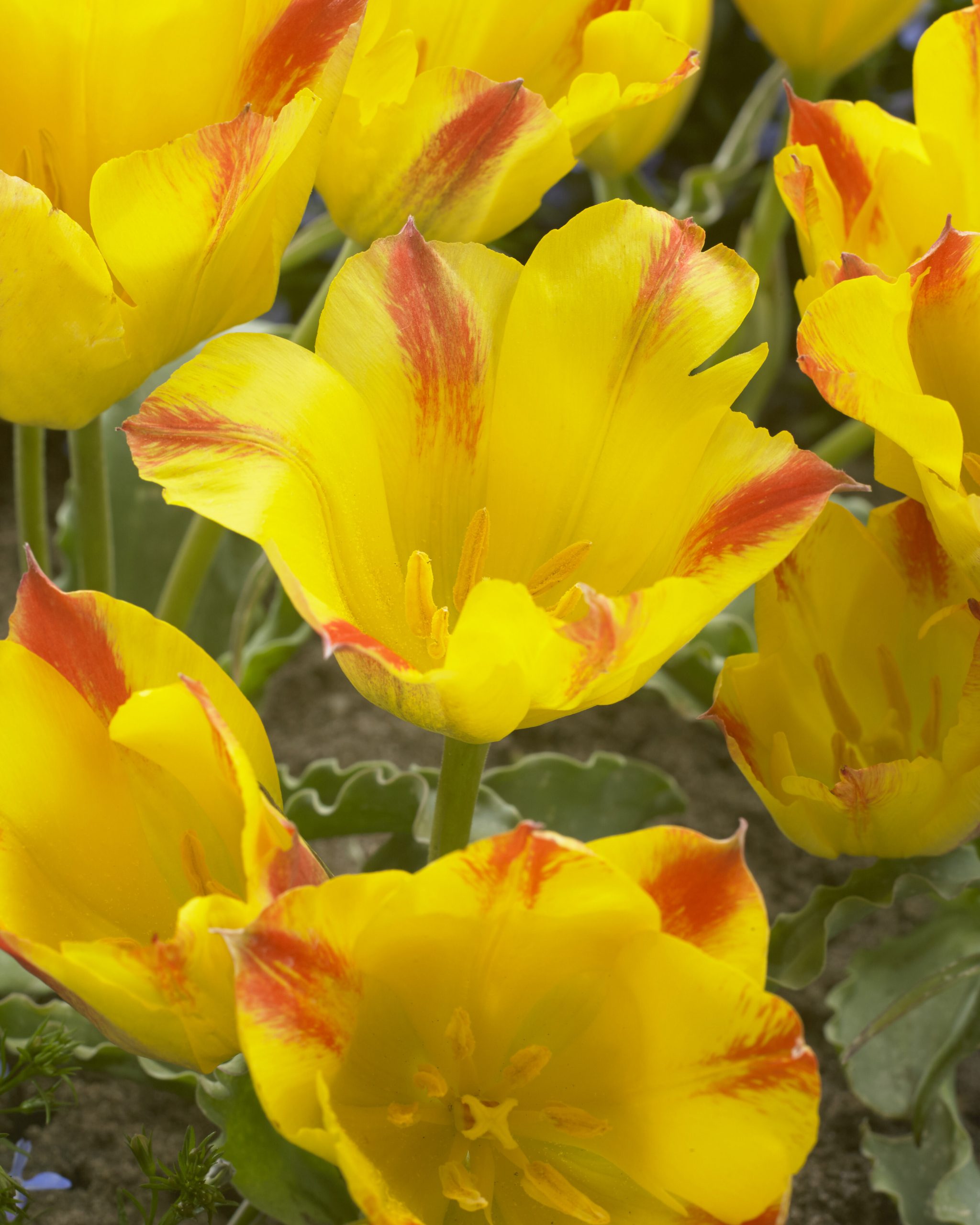 gelb, rot, IV-V, 20 cm, Blatt grün, sonnig, mittel, horstig, Pflanzabstand 15 cm