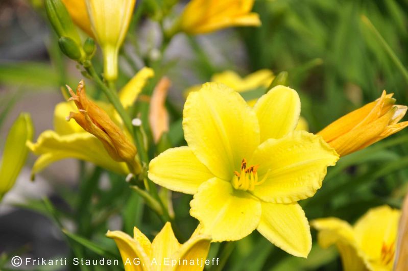 Farbenfrohe Staudenmischung mit beetstaudenähnlicher Wirkung aus kräftig wachsenden Staudenarten. Im Juni herrschen die Farben Rot, Gelb und Blau vor. Astern, Gräser und Perlkörbchen sorgen für einen ausgeprägten Herbstaspekt in Blau und Weiß.
